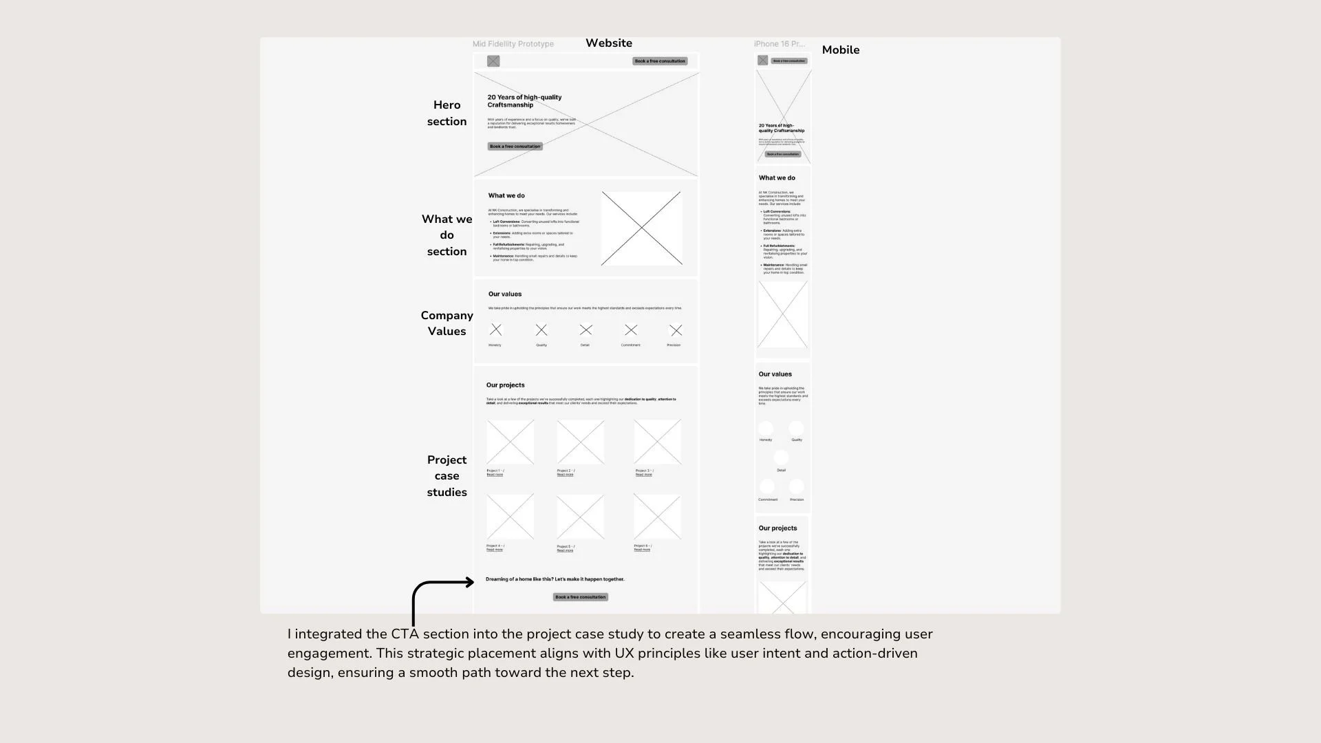 I was able to add this case study section after the first iteration, as during the initial round of user testing for the mid-fidelity design, I didn’t have enough time to complete it. I prioritised getting the design tested but made sure to include the case study section after my first iterations so that I could test it in my next round of user testing.